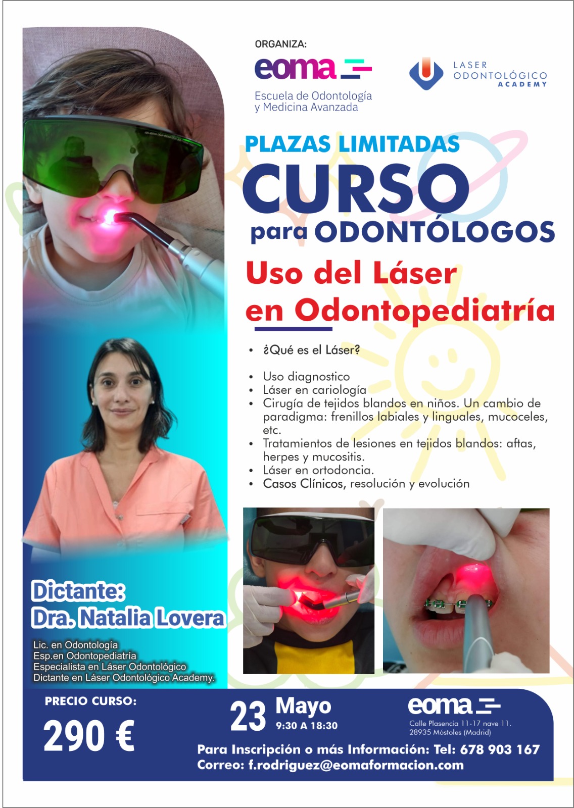 23 de mayo en Madrid, en la Escuela de Odontología y Medicina Avanzada (EOMA) con la Doctora Natalia Lovera.